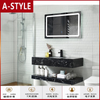 苏宁放心购北欧双层大理石洗手盆镜柜卫生间挂墙式洗手盆小户型浴室柜洗漱台A-STYLE