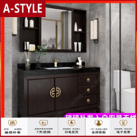 苏宁放心购(定制)新中式橡木浴室柜组合落地式轻奢实木洗脸盆柜卫生间洗漱台洗手盆A-STYLE