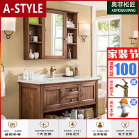 苏宁放心购(定制)美式实木浴室柜组合轻奢橡木落地式卫生间洗漱台洗手盆洗脸盆浴柜A-STYLE