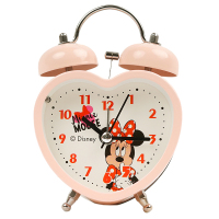 迪士尼(Disney)闹钟 静音时尚学生床头钟米妮心形女孩小夜灯懒人钟可爱打铃儿童石英钟