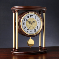 汉时欧式复古进口机芯实木装饰座钟客厅古典桦木时钟家用创意黄铜柱摆件HD382