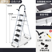 家用折叠梯子室内家庭人字多功能四步梯不锈钢古达加厚铝合金轻便伸缩 [升级安全卡扣]加厚白色六步梯