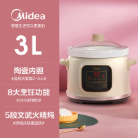 美的电炖锅家用多功能全自动煲汤锅迷你砂锅养生陶瓷炖盅煮粥神器 米白色-3L