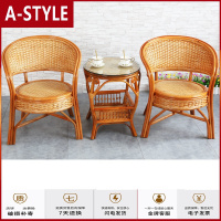 苏宁放心购藤椅三件套阳台桌椅小茶几组合单人座椅休闲椅真藤编织靠背腾椅子A-STYLE家具