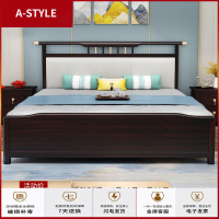 苏宁放心购新中式实木床1.8米轻奢软靠主卧室婚床1.5米小户型双人床简约大床A-STYLE家具