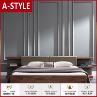 苏宁放心购北欧简约现代卧室实木床真皮床主卧黑胡桃木1.8M双人床家具A-STYLE