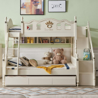 苏宁放心购美式高低床白色上下铺双层床实木儿童床多功能组合子母床男孩女孩A-STYLE
