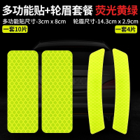 汽车反光贴夜光警示高亮安全摩托装饰遮挡划痕多功能车尾轮眉贴条 荧光黄绿10片 [轮眉+长形贴]荧光黄绿14片 抖音