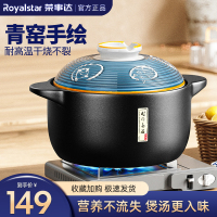 荣事达(Royalstar)日式砂锅炖锅4L青窑手绘系列家用燃气耐高温干烧不裂陶瓷煲汤石锅煲仔饭沙锅RA182221