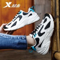 特步男鞋板鞋男2022秋季新款网面透气休闲鞋皮面正品轻便运动鞋