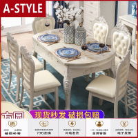 苏宁放心购欧式餐桌椅组合圆形可伸缩折叠大理石圆桌简欧实木小户型家用饭桌A-STYLE