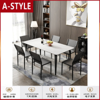 苏宁放心购极简岩板餐桌家用小户型饭桌现代北欧长方形餐台大理石餐桌椅组合A-STYLE