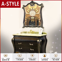 苏宁放心购(定制)卫生间黑色简欧式浴室柜橡木洗脸盆组合卫浴柜洗漱台洗手盆落地式A-STYLE
