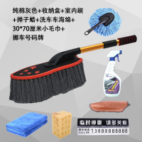 新款汽车掸子棉线洗车刷子擦车用除尘蜡拖把伸缩扫灰软毛汽车用品工具 灰色蜡刷七件套 抖音