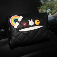 车载纸巾盒抽多功能创意挂式可爱汽车挂遮阳板扶手箱餐巾抽纸盒 彩虹可爱兔黑色-抽纸盒 抖音