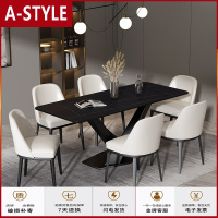 苏宁放心购北欧大理石餐桌现代简约桌子岩板小户型长桌轻奢长方形餐桌椅组合A-STYLE