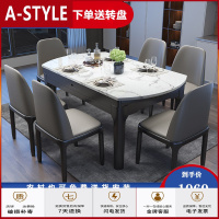 苏宁放心购大理石餐桌椅组合家用小户型现代折叠方圆两用简约北欧可伸缩餐桌A-STYLE家具