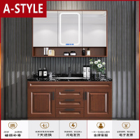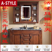 苏宁放心购简约现代美式落地橡实木浴室柜中式洗手台盆柜卫浴柜镜柜组合A-STYLE