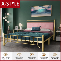 苏宁放心购北欧铁艺床双人床1.8米金色公主床民宿铁架床简约现代铁床单人床A-STYLE家具