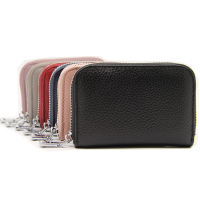新款头层牛皮风琴卡包RFID防盗横款女士卡夹男士卡片包多功能拉链小钱包 女