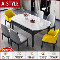 苏宁放心购轻奢岩板餐桌椅组合小户型家用现代简约大理石伸缩折叠北欧圆饭桌A-STYLE