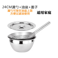 加厚不锈钢油炸大漏勺家用沥油厨房油鼓漏大号过滤网过油漏网 24CM漏勺+油盆+盖子[家用款]