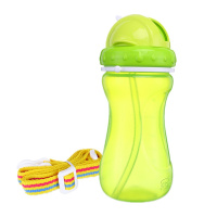 伊斯卡尔安全儿童水壶 婴儿吸管杯背带防漏喝水杯水壶宝宝PP学饮杯350ml颜色随机