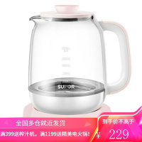 苏泊尔养生壶煮茶器1.5L办公室小型电茶壶煮茶壶花茶壶家用多功能玻璃煮茶器炖煮双全单壶电水壶 粉色