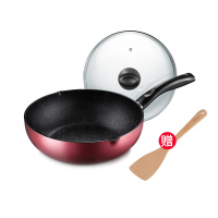 美的28cm不粘锅炒锅无油烟电磁炉燃气通用适用麦饭石色家用炒菜锅 酒红色