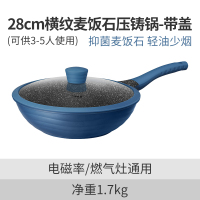 美的麦饭石平底锅炒菜锅不粘锅炒锅家用老式铁锅燃气炒锅电磁炉锅 蓝色 波纹压铸