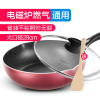 美的炒锅麦饭石不粘锅家用电磁炉适用燃气煤气灶炒菜锅专用平底锅 [28口径]酒红色