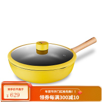 美的炒锅麦饭石不粘锅家用电磁炉适用燃气煤气灶炒菜锅专用平底锅 [28口径]金色