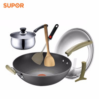 32cm 三代(适用3-6人) 苏泊尔(SUPOR) 炒锅火红点3代不粘炒菜锅 燃气电磁炉通用无烟锅 无油烟炒锅 锅具