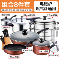 橙色8件套[电磁炉/明火通用] 苏泊尔不粘锅三件套装锅具全套家用不沾平底炒锅汤锅电磁炉燃气灶