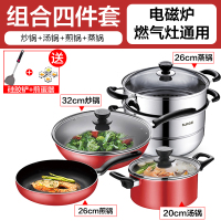 红色4件套[电磁炉/明火通用] 苏泊尔不粘锅三件套装锅具全套家用不沾平底炒锅汤锅电磁炉燃气灶