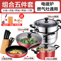 红色5件套[电磁炉/明火通用 苏泊尔不粘锅三件套装锅具全套家用不沾平底炒锅汤锅电磁炉燃气灶