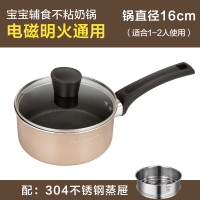 <金色+蒸格> 美的奶锅宝宝婴儿辅食锅麦饭石不粘小奶锅泡面汤锅电磁炉燃气通用