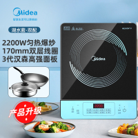 美的电磁炉家用小型智能炒菜锅一体多功能大功率套装正品 [湖水蓝]-双配