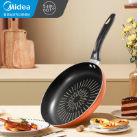 美的(Midea)平底锅煎锅不粘锅牛排锅煎蛋锅煎饼锅炒菜锅燃磁通用 [24CM]橙色太阳纹路