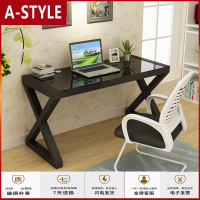 苏宁放心购钢化玻璃简易电脑桌个性时尚办公桌简约现代书桌台式家用电脑桌子A-STYLE家具