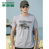 木林森(MULINSEN)夏季新款短袖男装上衣印花大码休闲T恤男圆领套头体恤