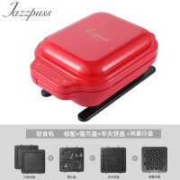 杰滋(JazzPuss)轻食机三明治炉早餐机家用小型定时华夫饼吐司压烤机JQ600(红)(标配三明治)+华夫饼+猫爪