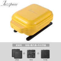 杰滋(JazzPuss)轻食机三明治炉早餐机家用小型定时华夫饼吐司压烤机JQ600(黄)(标配三明治)+华夫饼+猫爪