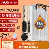 奥克斯取暖器油汀丁暖风机速热烤火炉家用节能省电暖器气片大面积 白+金13片