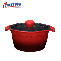 AMERCOOK阿尔菲塔麦饭石汤锅不粘锅24cm 家用汤锅合金无油烟炖锅煲汤锅火锅平底锅 燃气灶电磁炉通用锅 中国红
