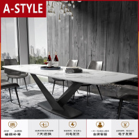苏宁放心购北欧大理石餐桌椅组合意式岩板现代简约小户型长方形创意饭桌家用A-STYLE