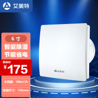 艾美特排气扇卫生间低噪智能除湿排风扇墙壁玻璃窗式强力换气扇小型家用抽风机 6寸 开孔150[APC15-HU]智能款