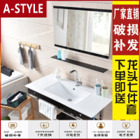 苏宁放心购家用陶瓷洗漱台卫生间挂墙式洗脸盆小户型简易钢化玻璃洗手柜组合A-STYLE