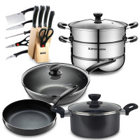 黑金十件套[电磁炉通用] 苏泊尔十件套装锅具套装厨具套装炒锅套装不粘锅炒菜锅蒸锅套装刀具组合