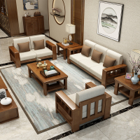 艺可恩中式实木沙发现代简约客厅橡胶木布艺三人小户型原木家具组合套装